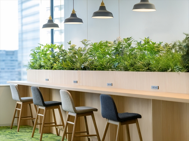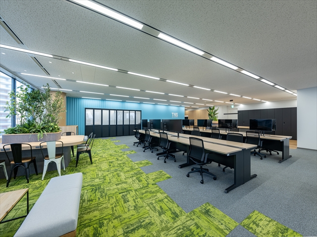新オフィスは、業務に集中できる執務スペースと、社員がリフレッシュできる空間を設け、日々の業務にメリハリをつけながら働ける環境となっています。